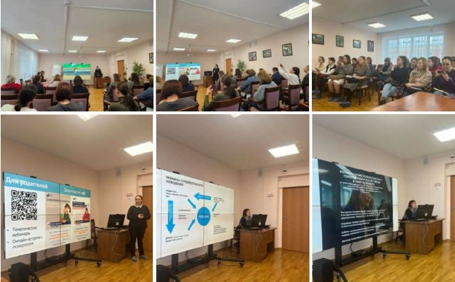 15 февраля 2024 года на базе ППМС-центр «Развитие» состоялось районное родительское собрание на тему «Роль семьи и школы в профилактике рисков суицидального поведения ребенка». Спикерами выступили Фадеева Галина Валентиновна, педагог психолог центра восстановительного лечения им. С.С. Мухина и Смыкало Любовь Владимировна, заместитель председателя Межрегиональной общественной организации поддержки семьи, материнства, отцовства и детства «Врачи детям». На собрании присутствовало 32 родителя.