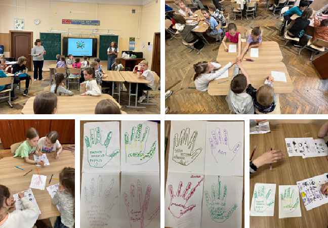 Ребята с большим интересом откликнулись на предложенную тему и проявили активность в ходе занятия. Они рисовали отпечатки своих ладоней, рассказывали о своих опасениях, хобби и о том, чем гордятся. Выполняя задания, ребята осознали, что, несмотря на различия, у них много общего. Также они решали непростые ребусы-головоломки, связанные с темами дружбы и взаимопомощи.