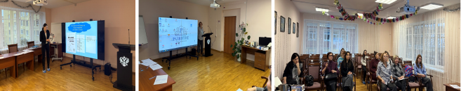 Педагог-психолог Азовцева Наталья Владимировна выступила на тему «Развитие конфликтологических компетенций классных руководителей в образовательной организации». В рамках выступления Наталья Владимировна рассмотрела роль медиативных технологий в повышении конфликтологической компетентности классных руководителей. Участники ознакомились с основными принципами разрешения конфликтных ситуаций в стратегии сотрудничества, и получили практический опыт использования техник обратной связи, способствующих конструктивному диалогу.