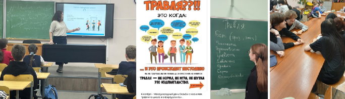 В ходе мероприятий учащиеся 4 -10 классов узнали о природе этого явления, его причинах и последствиях, а также о том, как можно предотвратить случаи травли как со стороны жертвы, так и со стороны свидетелей, обсудили различные формы травли, включая физический, вербальный и кибербуллинг, и узнали, как важно распознавать эти ситуации.